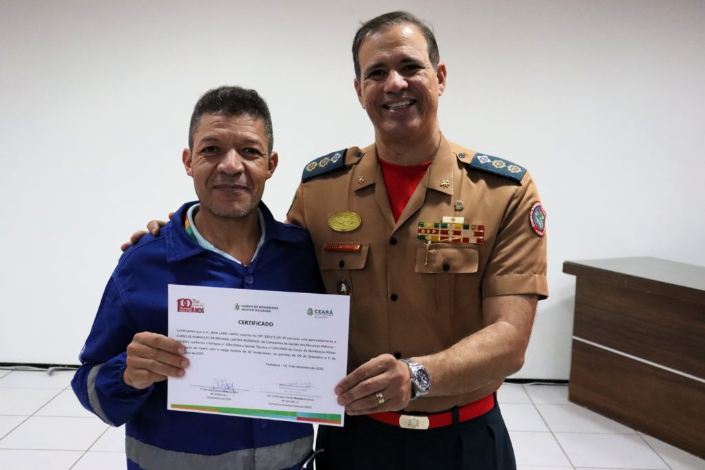 “Obrigado ao Corpo de Bombeiros do Ceará pela parceria com a Companhia e com a Sohidra nos últimos anos”, agradeceu Antônio Treze de Melo, assessor especial da presidência, durante a entrega dos certificados.