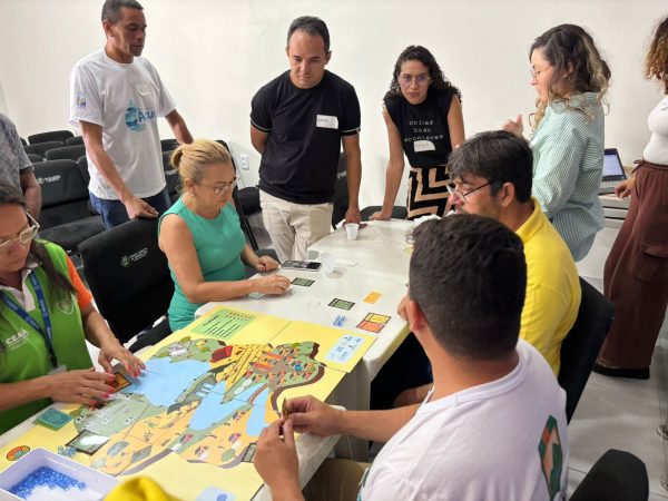Durante a primeira parte do encontro, foi apresentado o pré-diagnóstico elaborado com base na última etapa realizada em 13 de novembro. Destacando avanços e desafios, a análise proporcionou uma visão abrangente da situação atual. Num momento de integração, também ocorreu a dinâmica intitulada “Seca em Jogo” que simula o funcionamento do reservatório de acordo com as necessidades da localidade.
